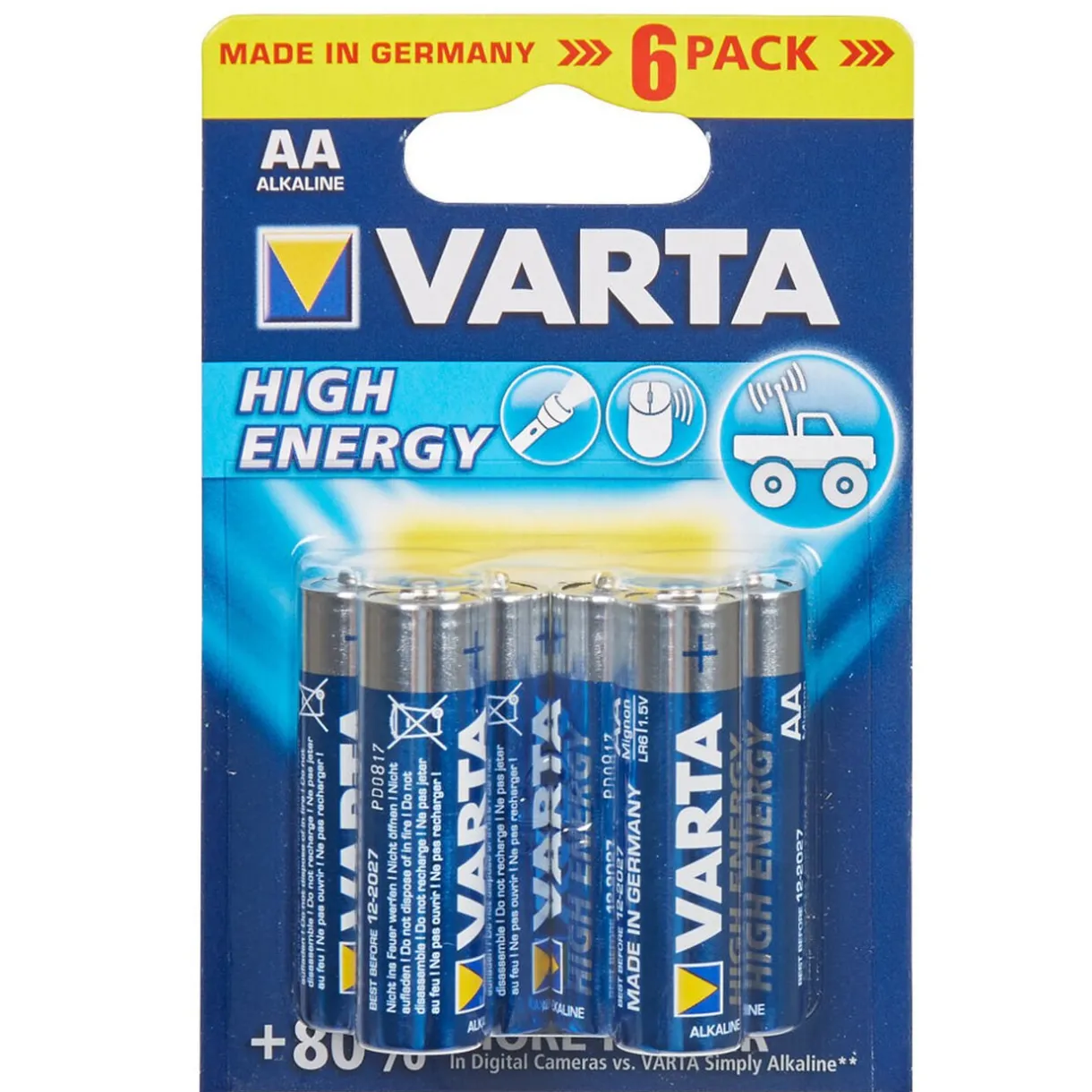 Lot de 6 piles LR06 type AA, alcaline varta.