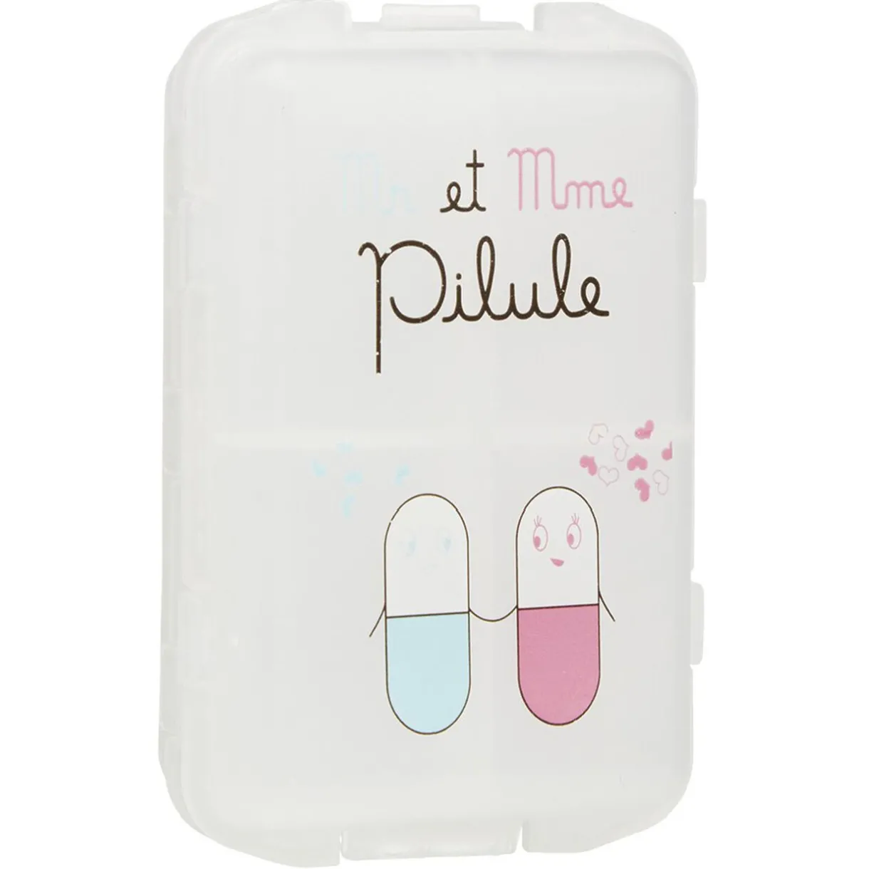 Pilulier 6 compartiments avec décor fantaisie.