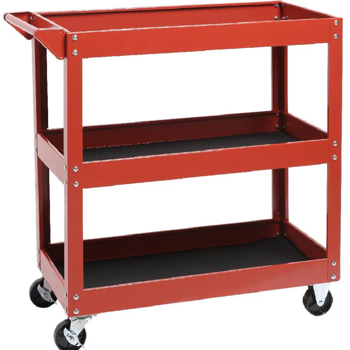 Organisez votre espace de travail sur 3 étages grâce à ce chariot métallique rouge à la fois design et pratique. La servante d’atelier est munie de roues pivotantes que l’on peut bloquer si besoin.