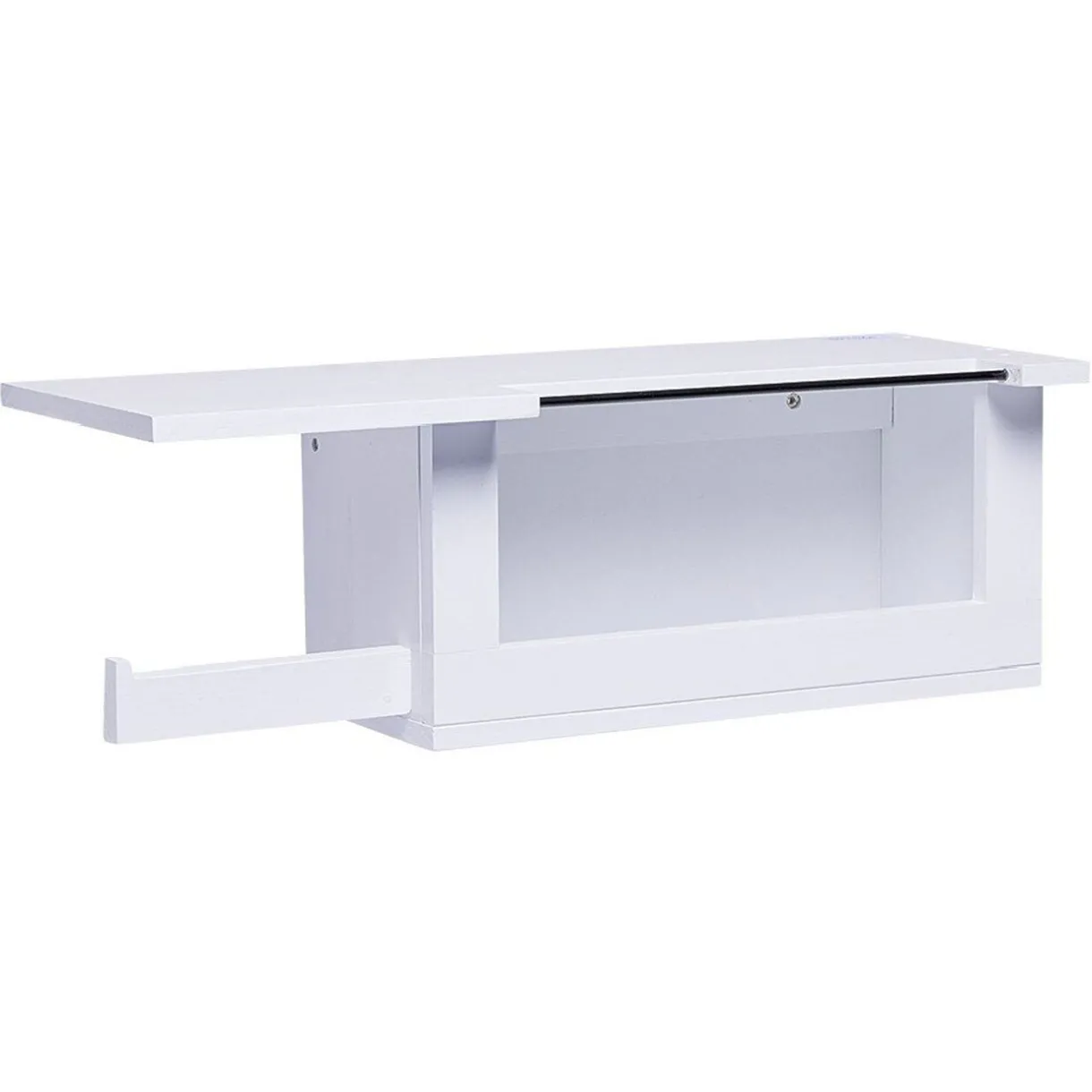 Cette tablette dérouleur de papier toilette en bois blanc fera un support pratique et élégant pour votre cabinet.
