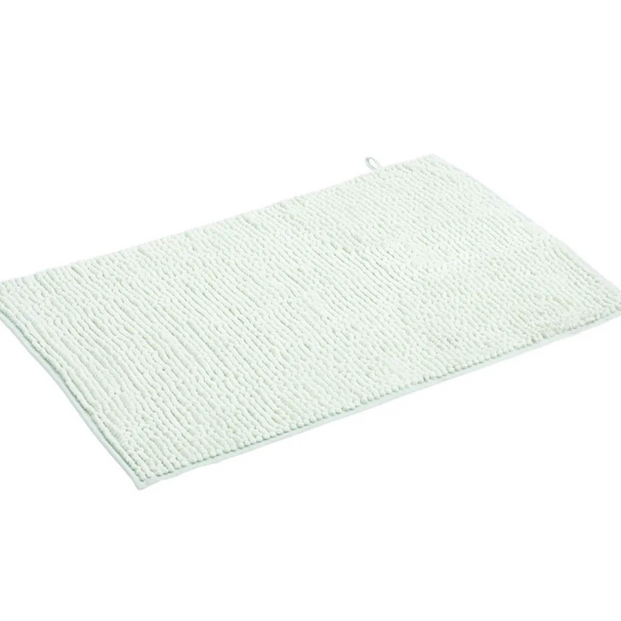 Tapis de salle de bain de type chenille au coloris vert. Doux et confortable pour les pieds.