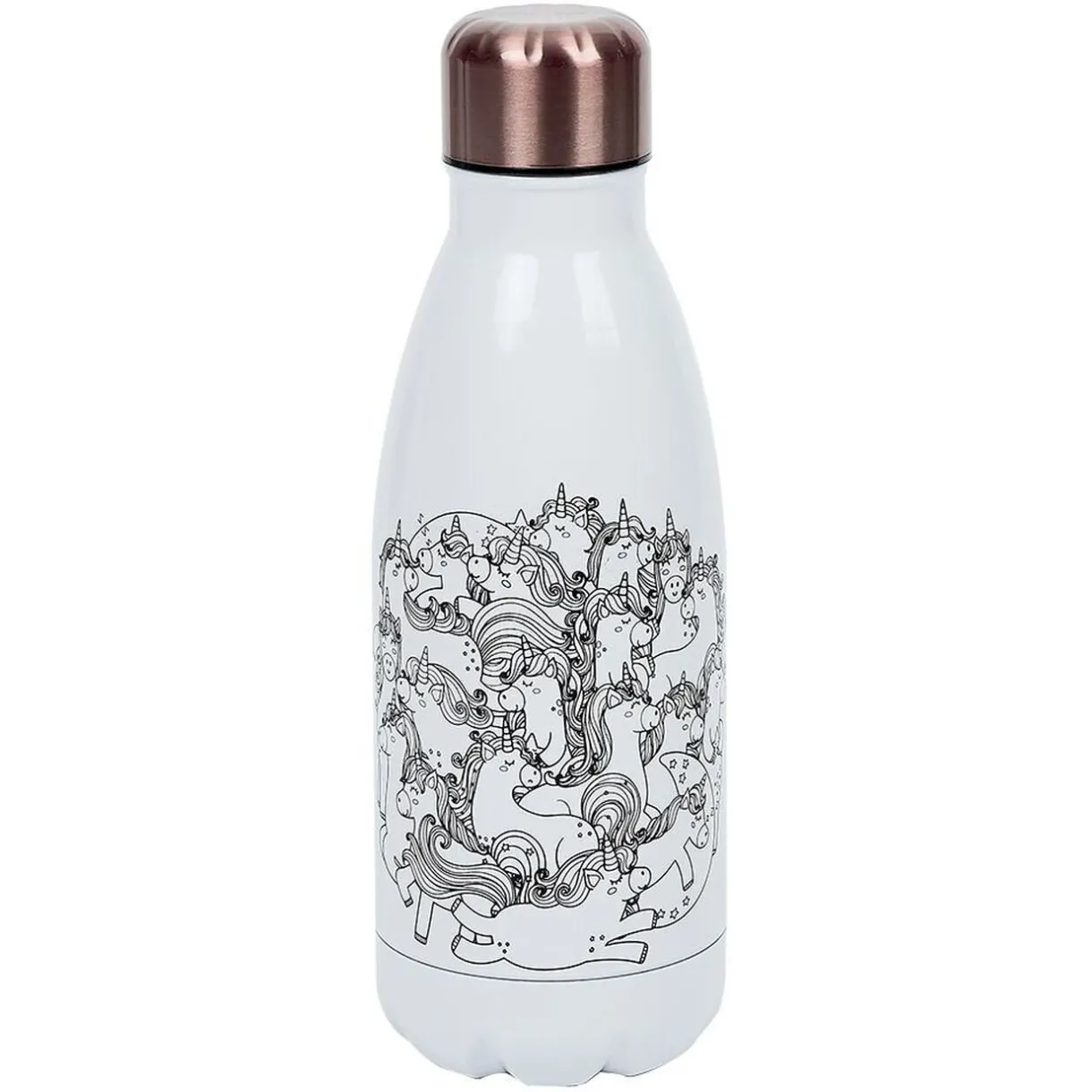 Découvrez cette gourde isotherme 350mL à colorier, accompagnée de 6 marqueurs.