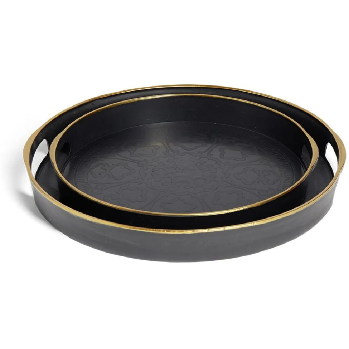 Ce lot comprend deux plateaux en plastique noir, chacun mesurant respectivement 29 cm et 36 cm de diamètre avec une hauteur de 4 cm, offrant une surface spacieuse pour servir vos plats et boissons avec style.