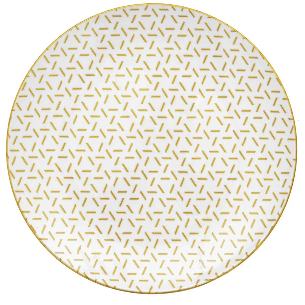 Set de 4 assiettes à dessert en porcelaine blanche avec contour et motifs petits traits colorés formant des triangles, idéal pour créer des mix and match de couleur sur votre table.