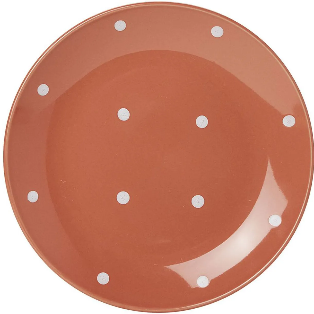 Set de 4 assiettes rondes plates aux couleurs assorties avec motif pois.