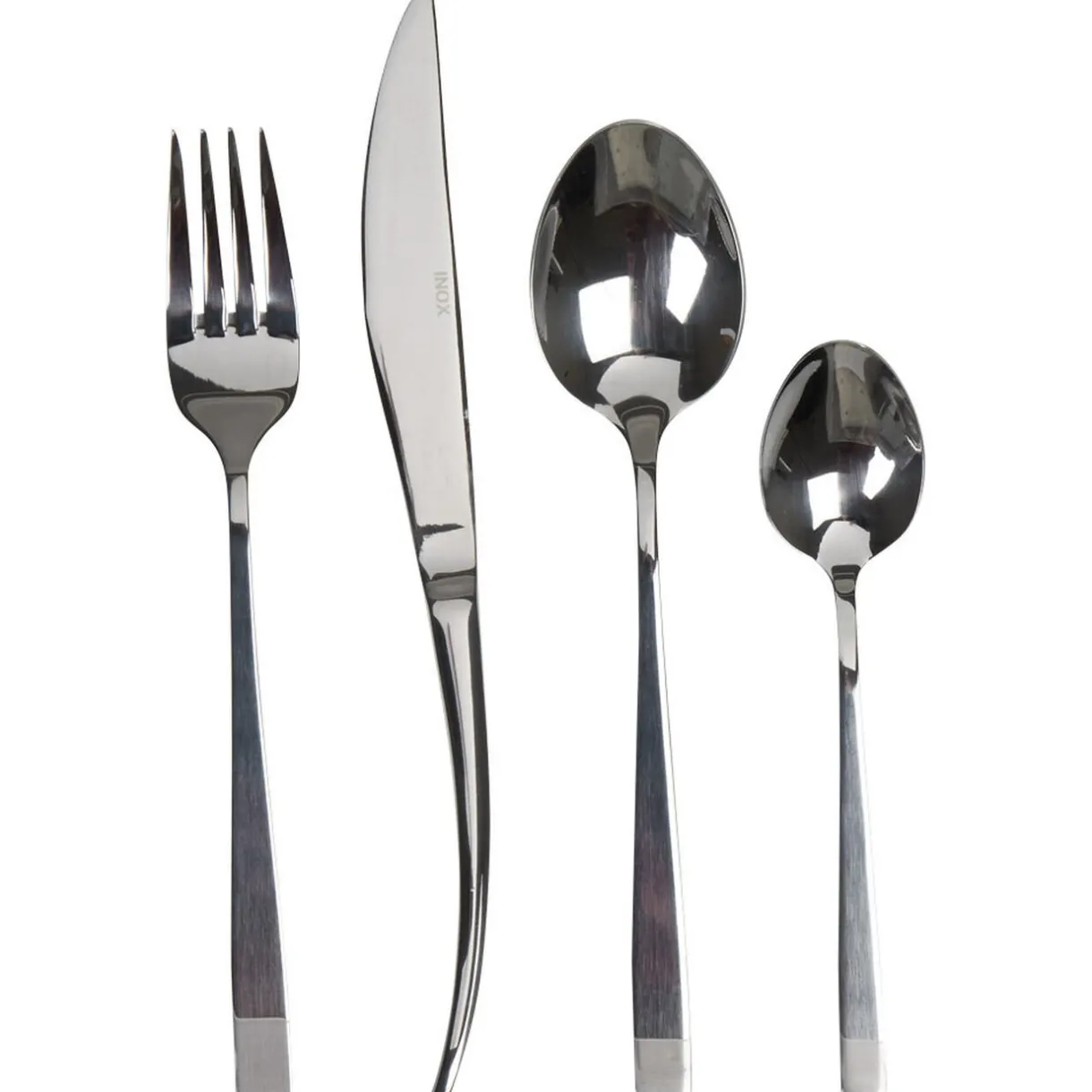 Comprend 4 fourchettes, 4 couteaux, 4 cuillères à soupe et 4 cuillères à café.