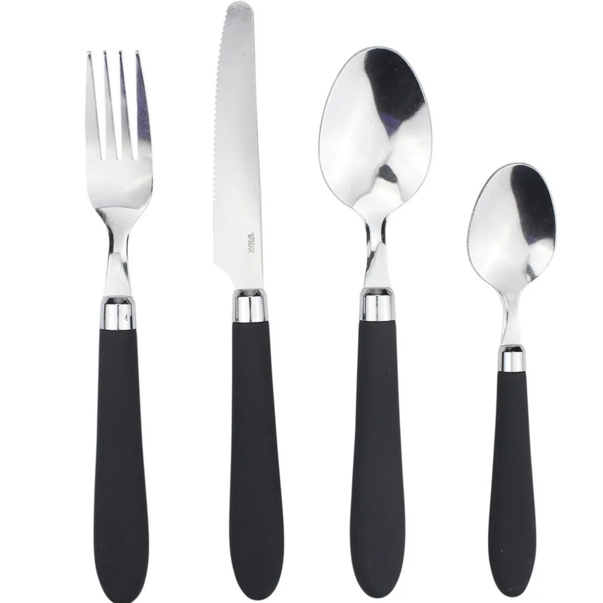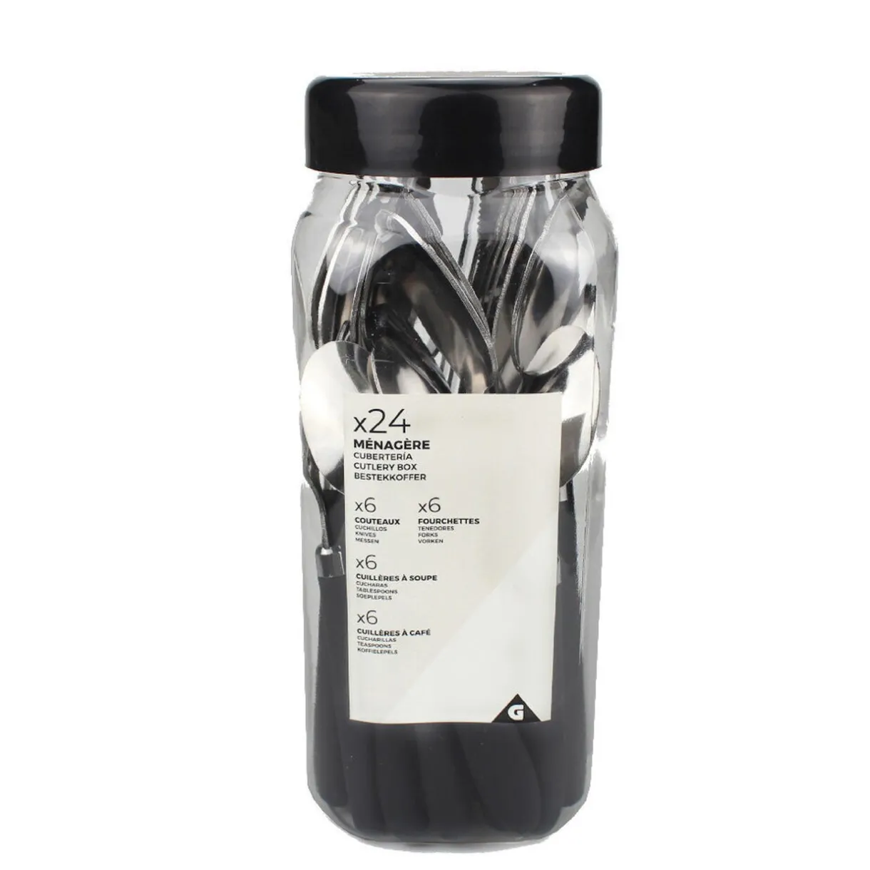 Cette ménagère comprend 24 pièces en inox avec manche couleur noire :