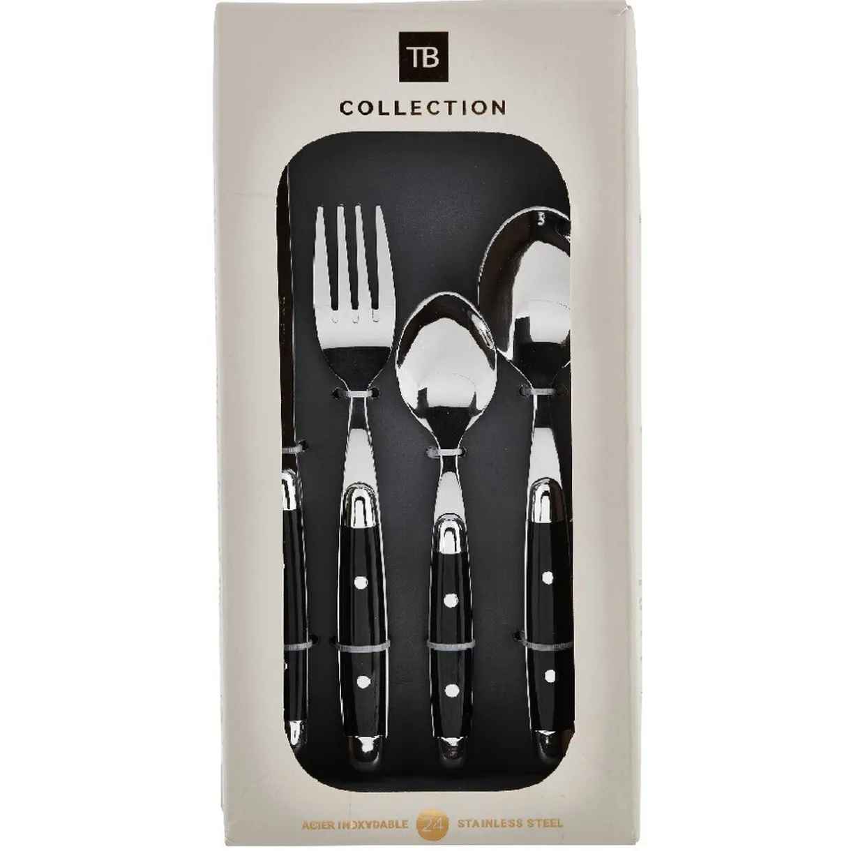Besoin de couverts ? Cette ménagère Bastille fera forcément l’affaire. 6 couteaux, 6 fourchettes, 6 cuillères à soupe, 6 cuillères à café de couleur noir et argent.