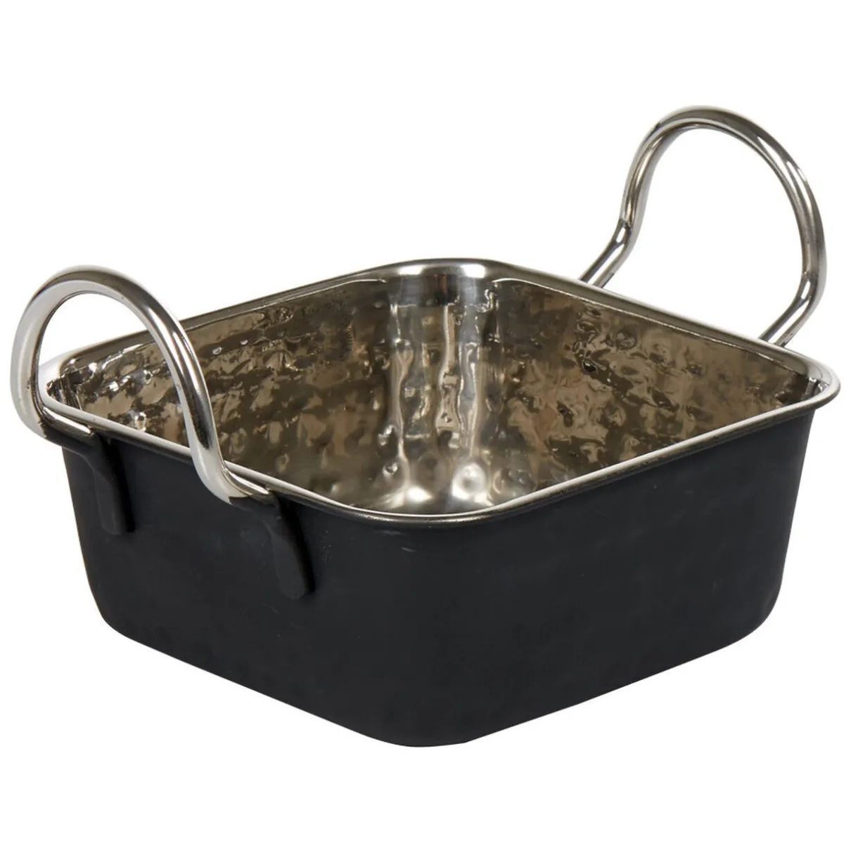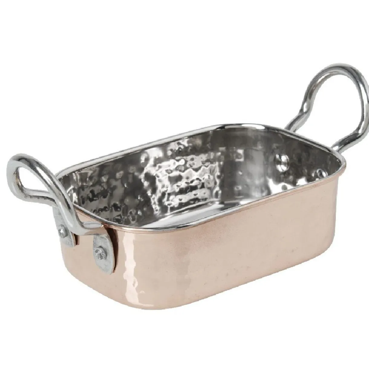 Mini plat à four en acier noir ou cuivre effet martelé, idéal pour présenter vos recettes individuelles de manière originale et chaleureuse.