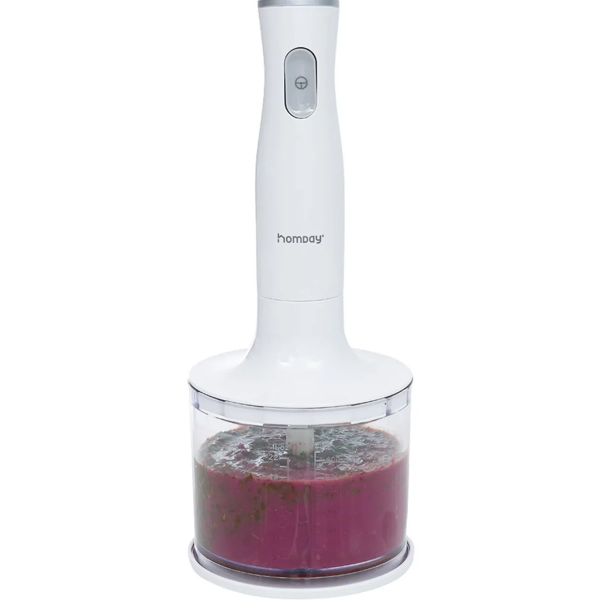 Ce mixeur Homday 2 en 1 composé d’un mini hachoir de 600 ml et d’un pLongueur vous permet de mixer ou hacher vos aliments selon vos besoins.