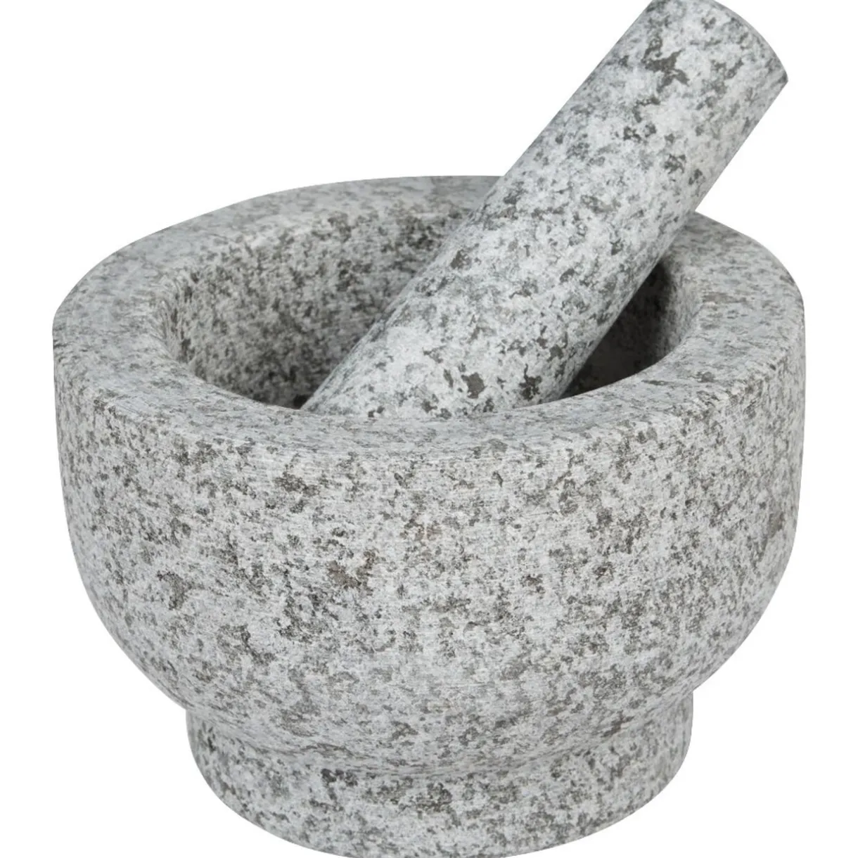 Ce motier en granite gris avec pilon, robuste et stable, sera idéal pour moudre et mélanger toutes les épices, herbes et autres graines que vous souhaitez.