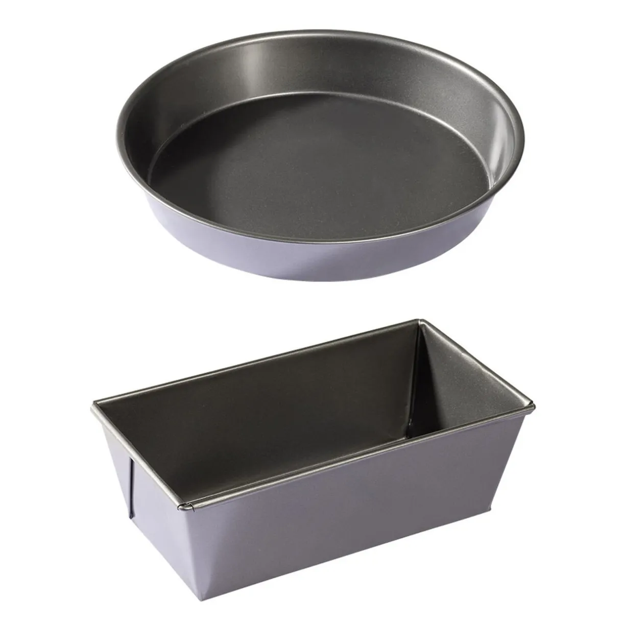 1 moule à cake et 1 moule à manqué en métal noir avec revêtement anti-adhérent pour un démoulage parfait.