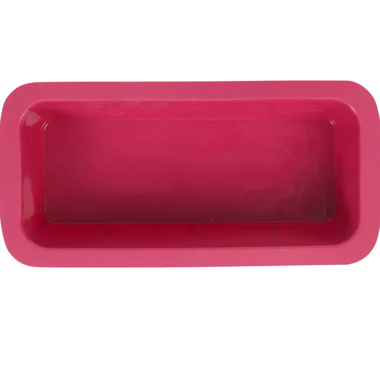 Moule à cake en silicone rose, ultra souple et résistant, idéal pour un démoulage facile.