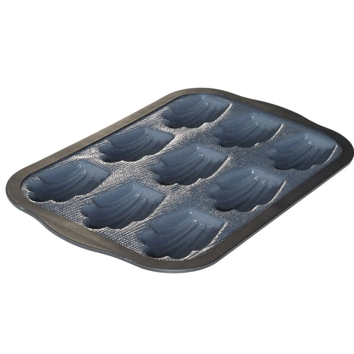 Moule gris et noir pour confectionner 9 délicieuses madeleines. Son association de 3 matières vous offrira une cuisson idéale en plus de ne pas accrocher au plat !