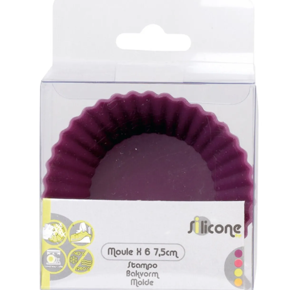6 moules à muffins, Ø 6 cm, h. 3 cm, silicone, diff. coloris, disponibilité selon arrivage. Le silicone assure un démoulage et un entretien faciles. Ses propriétés lui permettent de résister à de très hautes températures de cuisson.