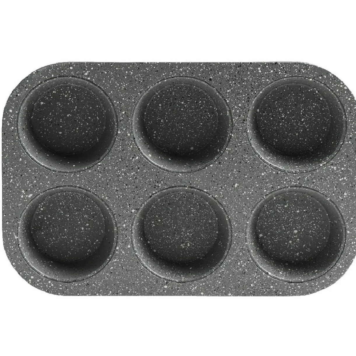 Moule à 6 muffins gris en métal, revêtement effet marbre.