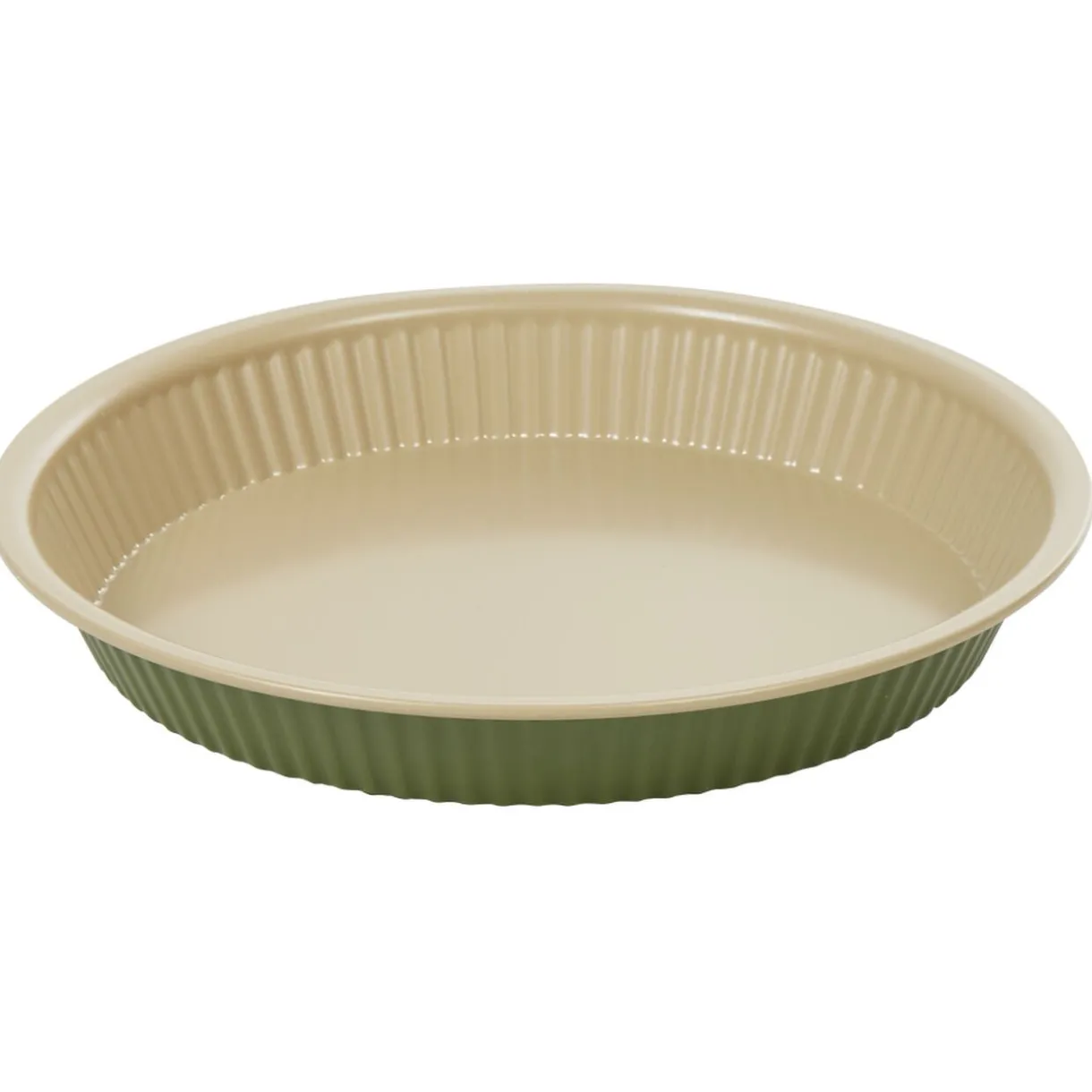 Préparez et cuisez de belles tartes dans ce moule aux rebords striés de couleur beige à l’intérieur et vert foncé à l’extérieur.