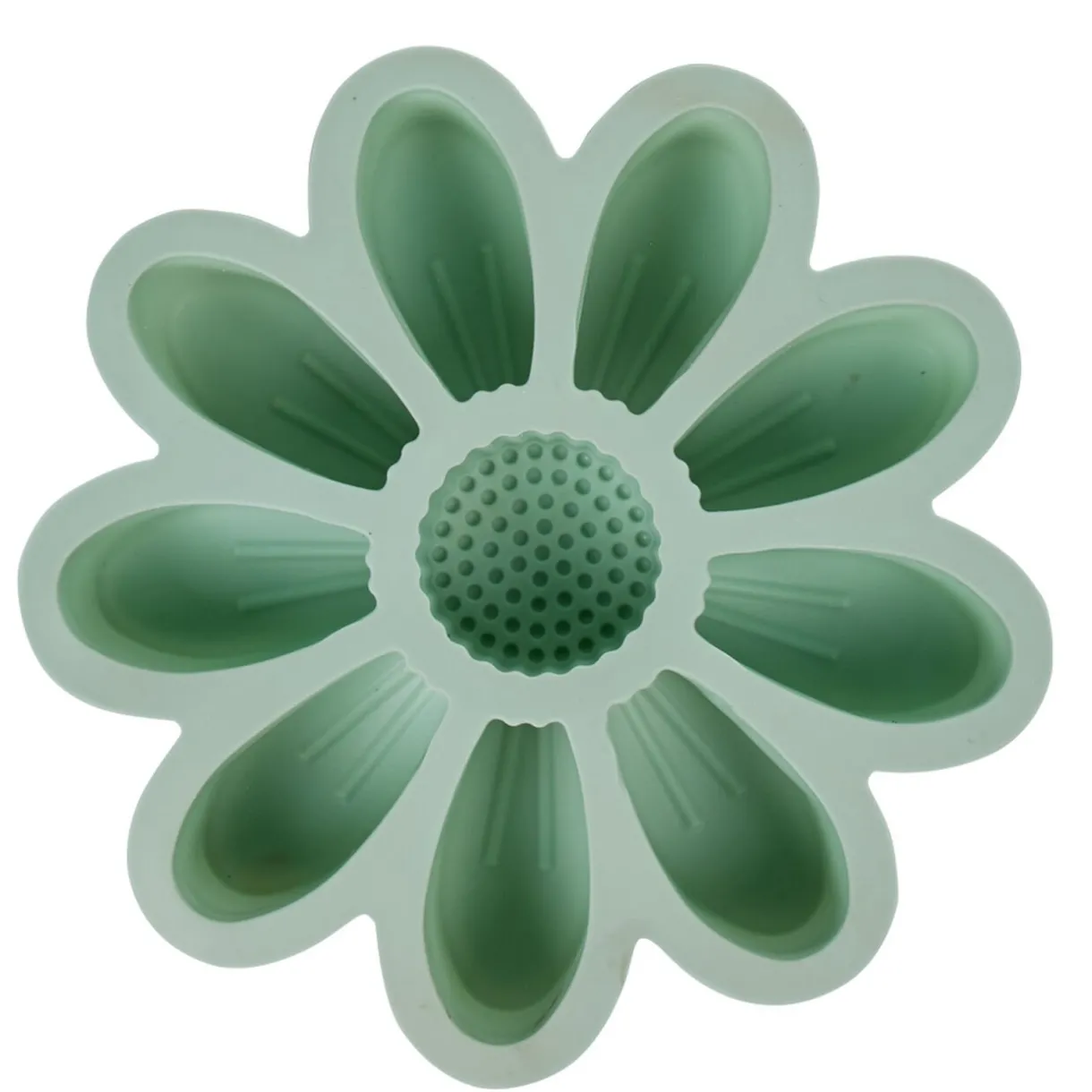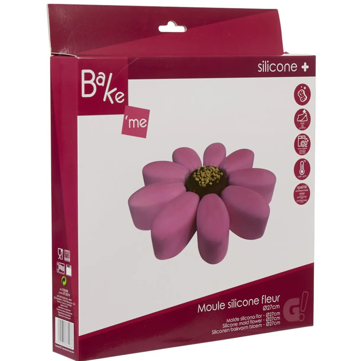 Moule siliconé violet en forme de fleur. Idéal pour créer de jolis gâteaux avec originalité !