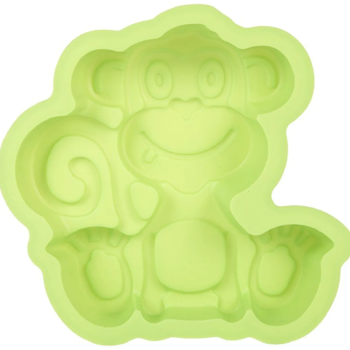 Moule silicone à gateaux forme singe vert. Dim : 20 x 19 x 4,5 cm.