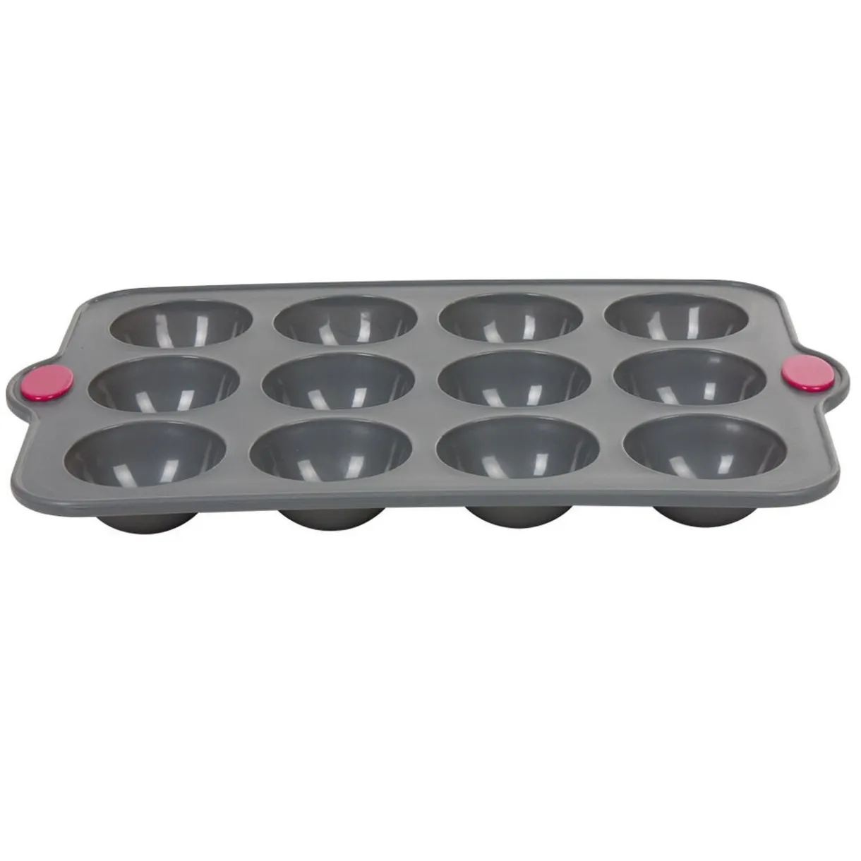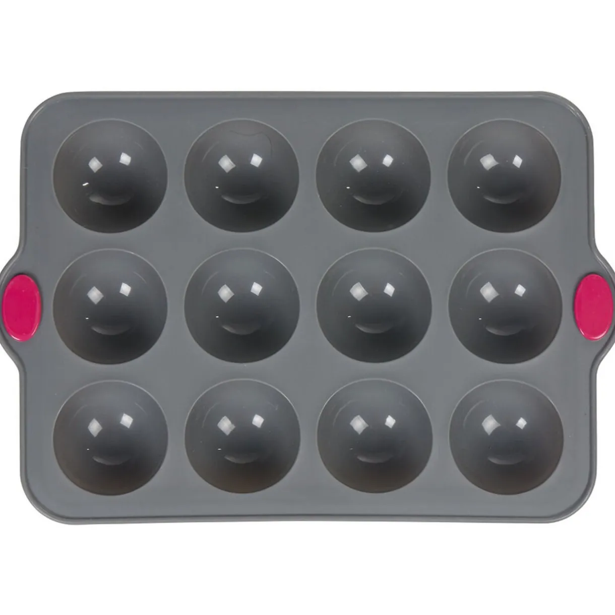 Moule en silicone gris pour la cuisson de 12 minis dômes avec armature rigide en acier pour une meilleure stabilité et prise en main.