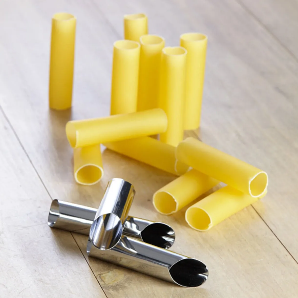3 moules cylindres à garnir, L. 11,5 cm, métal. S’utilise avec tous types de pâtes.