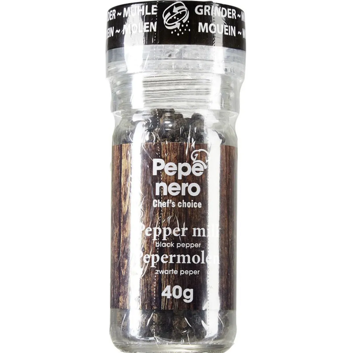 Moulin à sel « Sale Di Mare » 90g ou moulin à poivre « Pepe nero » 40g, disponibilité selon stock en magasin.
