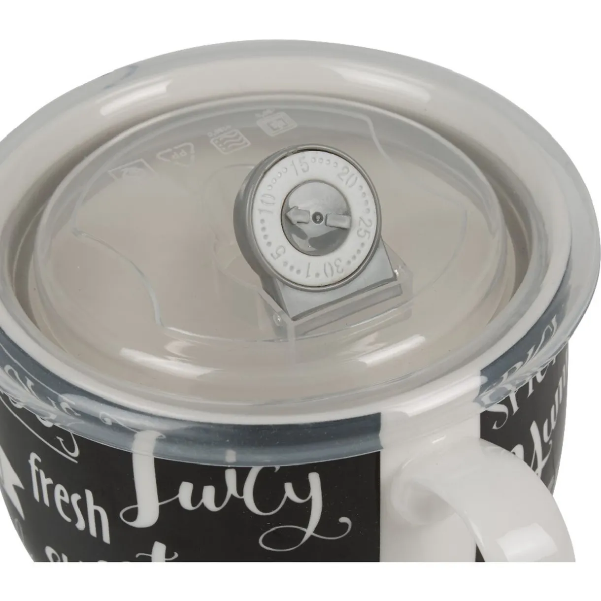 Ce produit existe en 6 modèles, modèle aléatoire selon disponibilité en magasin. -Dimensions: l 16,2 x h 12,7 x L 8,5 cm. – Matières: couvercle: Polypropylène, Mug: porcelaine.