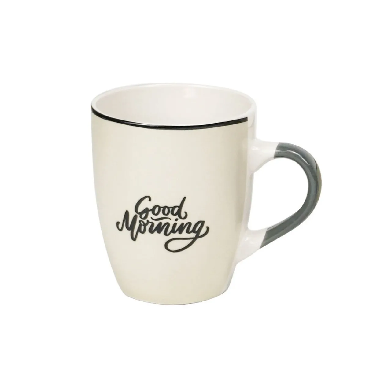 Optez pour ce joli mug avec inscription « Good Morning » sur fond uni vert pour vos petits-déjeuners. Idéal pour se réveiller en douceur avec un message personnalisé!