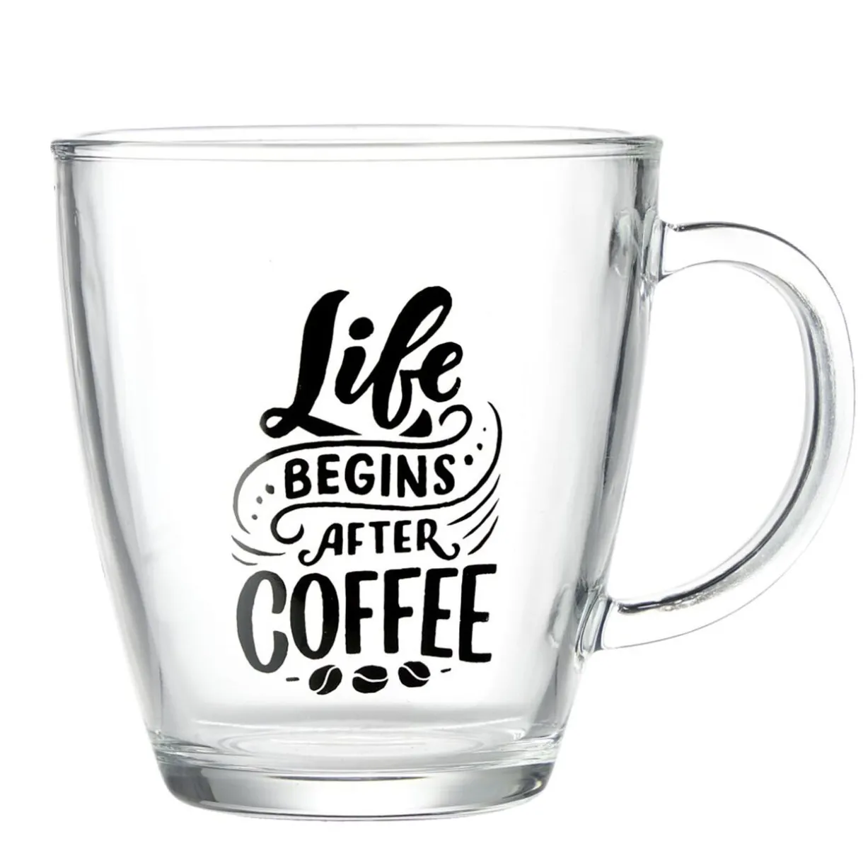Découvrez le mug en verre transparent avec motif wording, parfait pour apprécier vos boissons favorites.