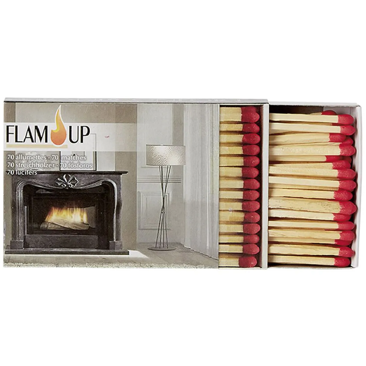 Boîte de 70 allumettes Flam’up Grand confort pourun allumage en toute sécurité.