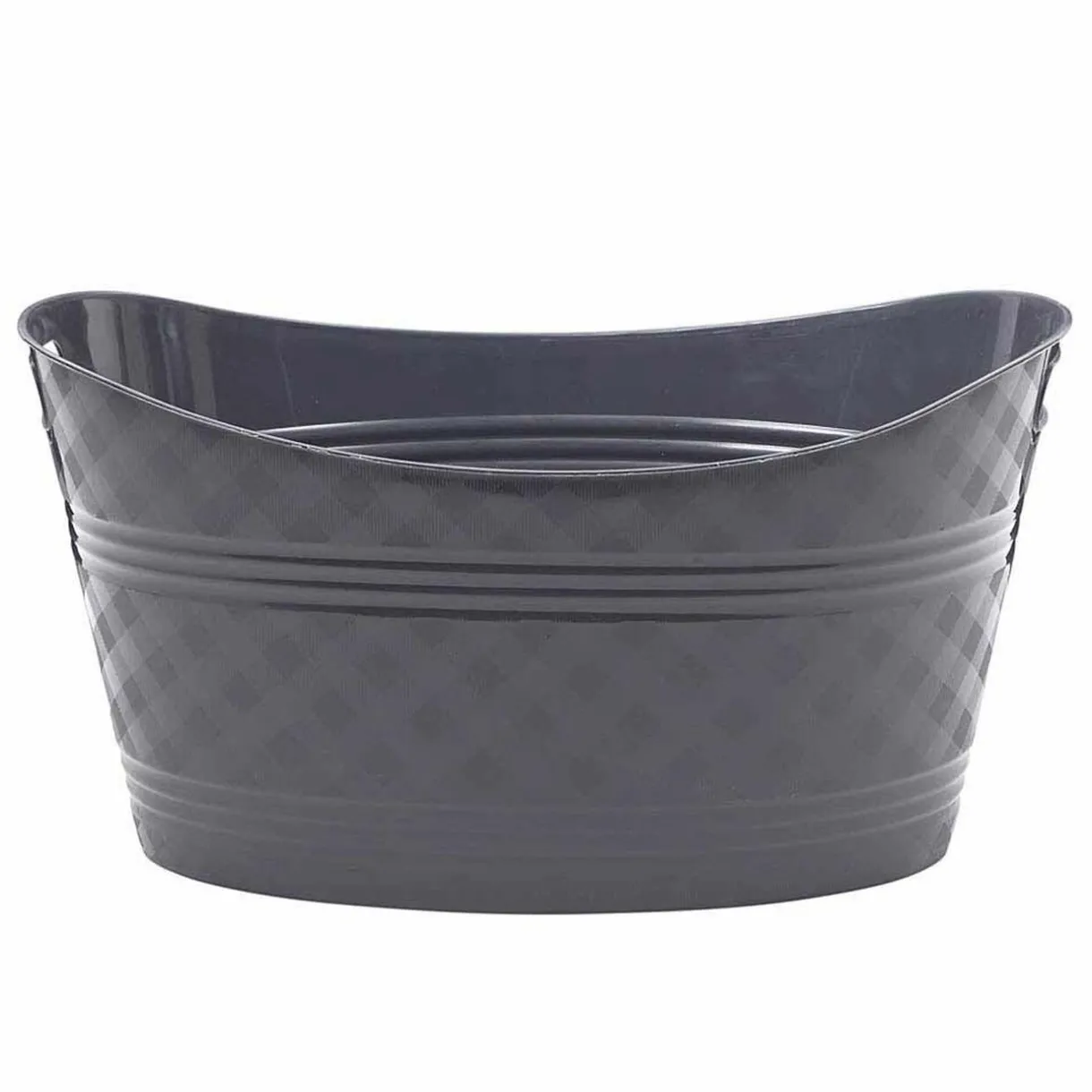 Pour vos tâches ménagères, cette bassine souple ovale de couleur gris uni à l’intérieur et motifs quadrillés à l’extérieur sera idéale.