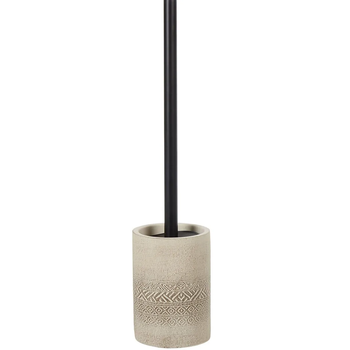 Brosse WC avec socle de couleur beige gravé design graphique et manche noir.