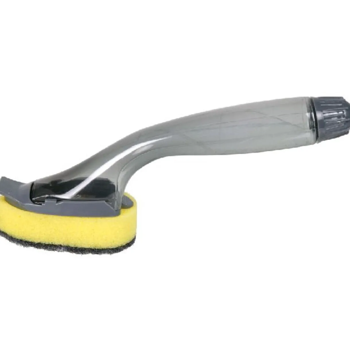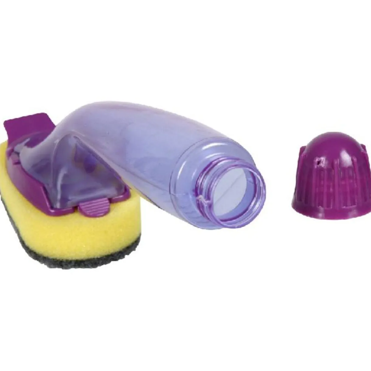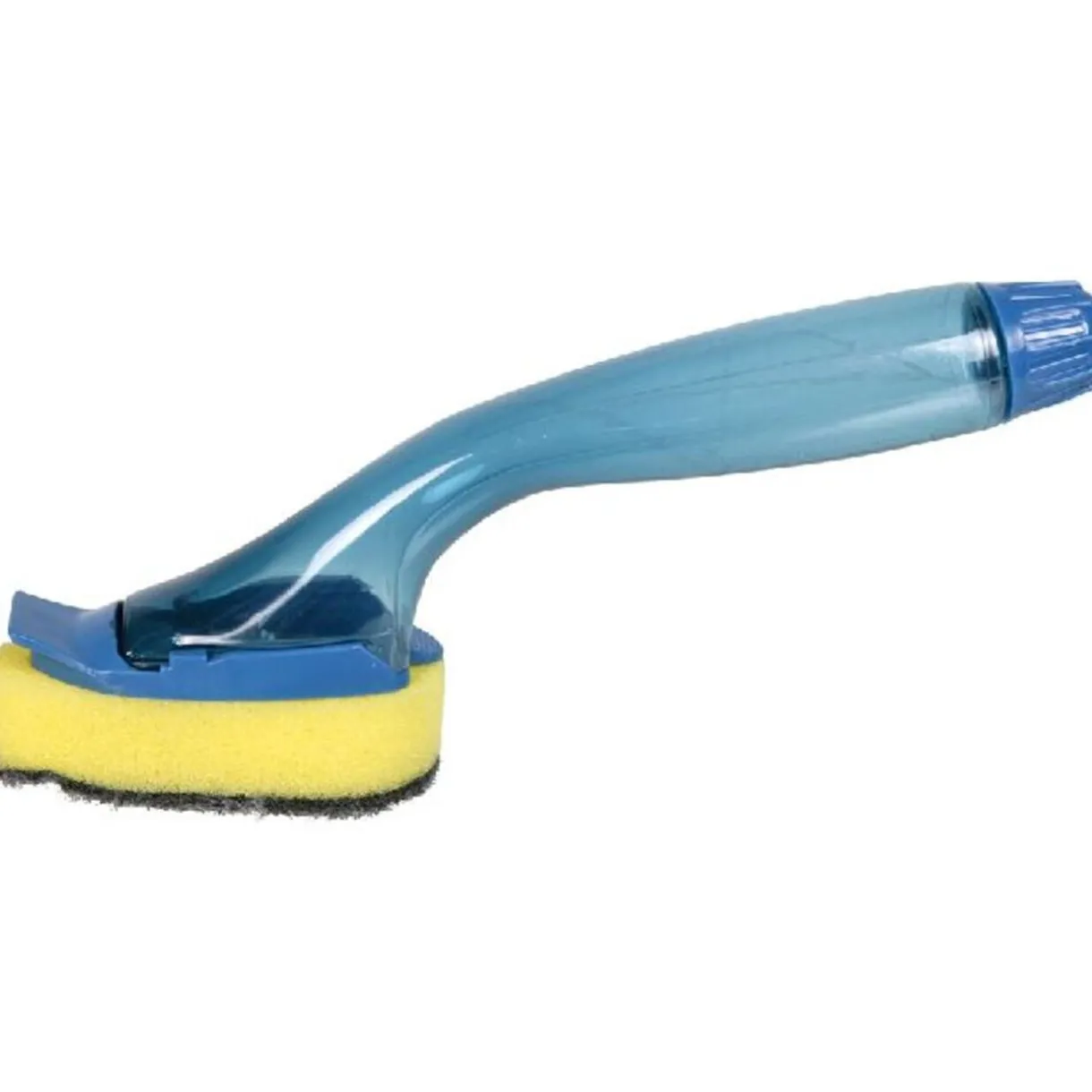 Eponge grattoir avec réservoir pour liquide vaisselle (15cl.), plastique. Diff. coloris, disponibilité selon arrivage.