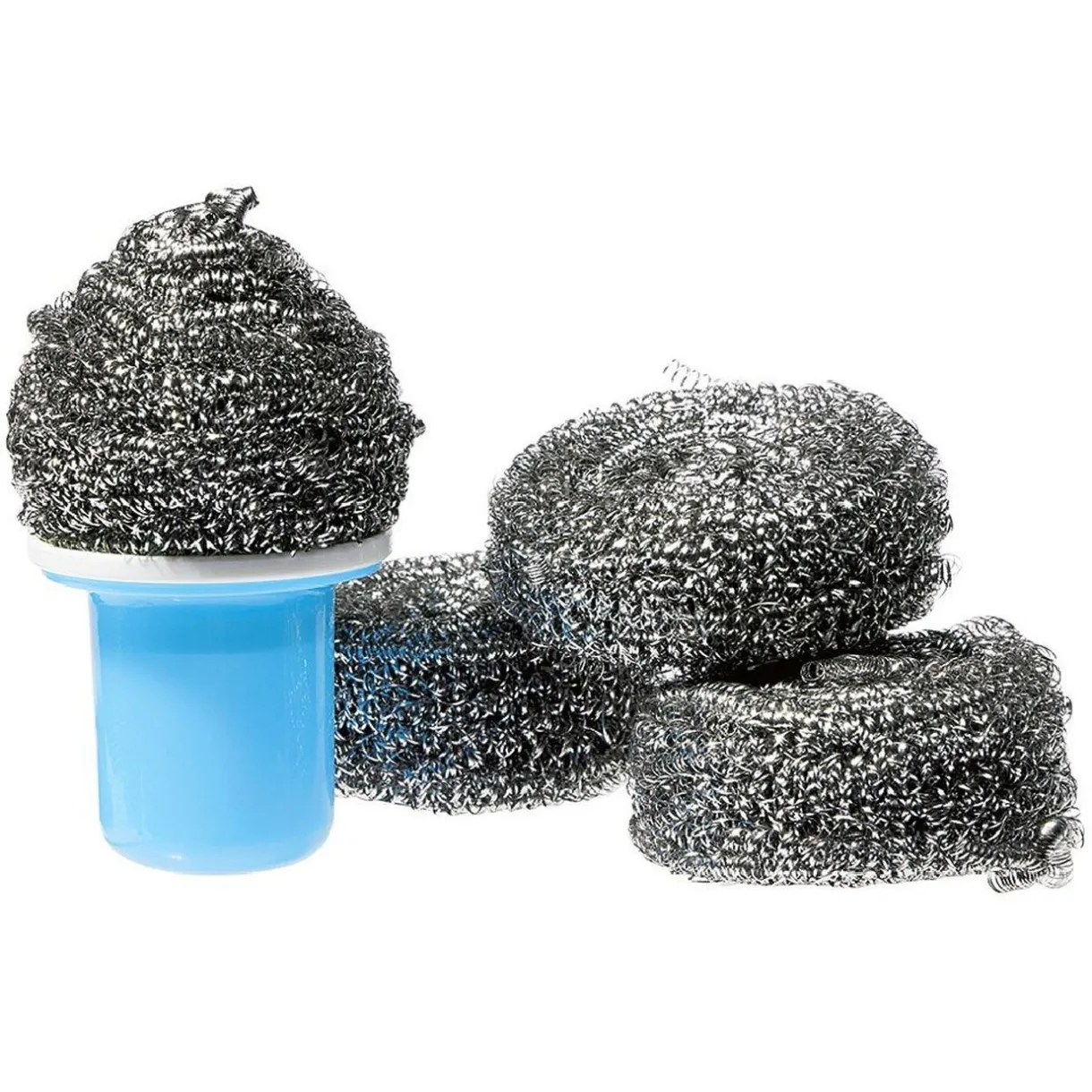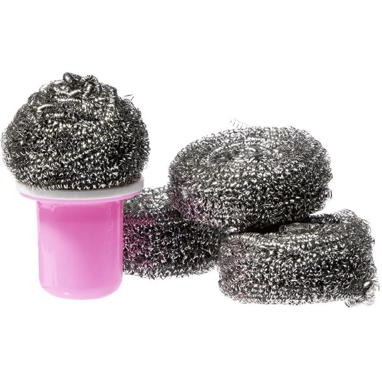 4 éponges à récurer en inox avec une poignée pour une prise en main facilité.