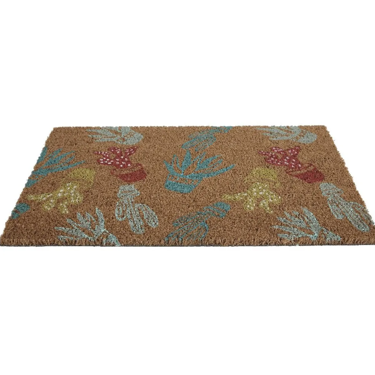 Ce paillasson en fibre de coco est décoré de jolies fleurs multicolores qui rappellent le printemps.