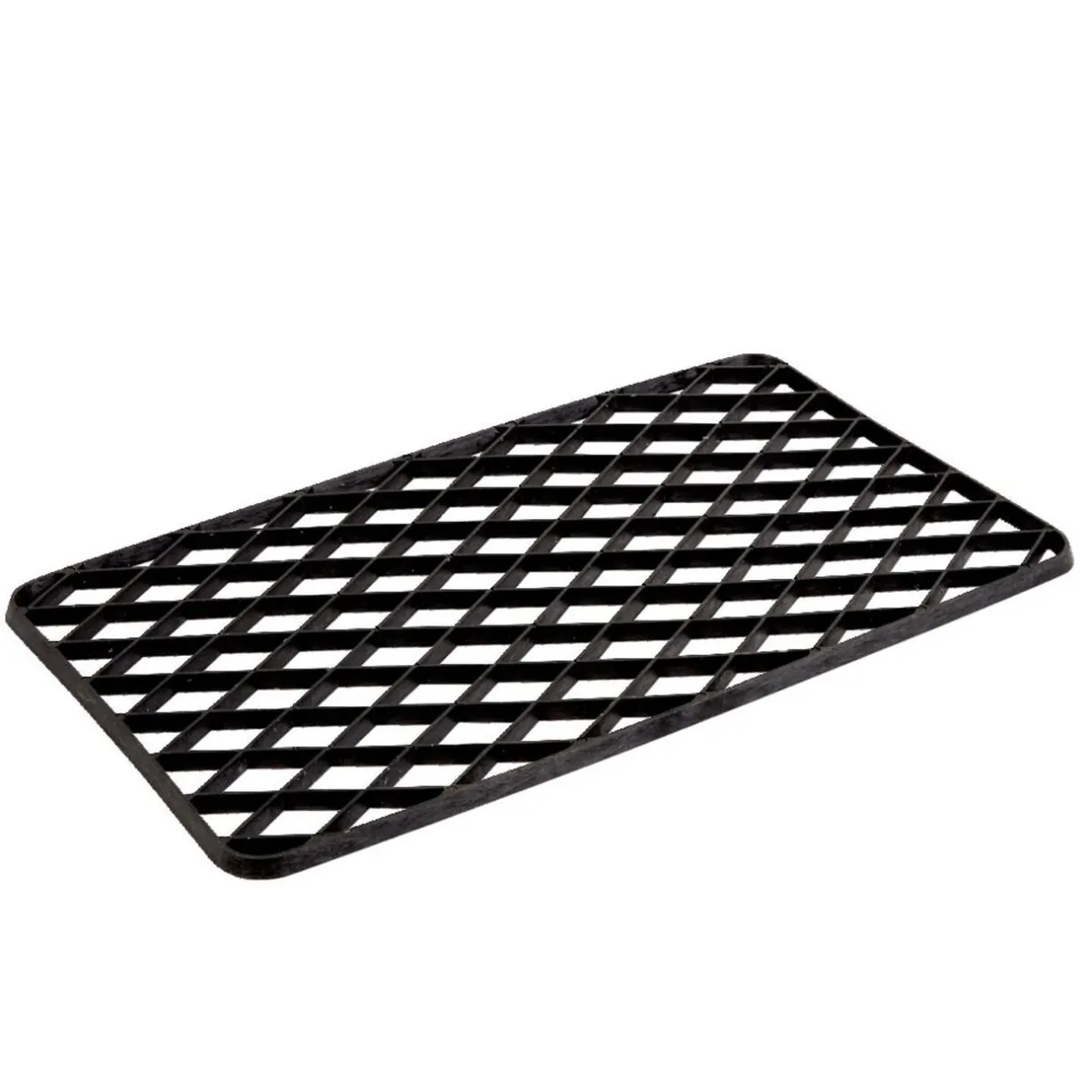 Tapis d’entréeen caoutchouc à motif grille uni noir, idéal pour désincruster la boue et autres saletés sur les bottes.