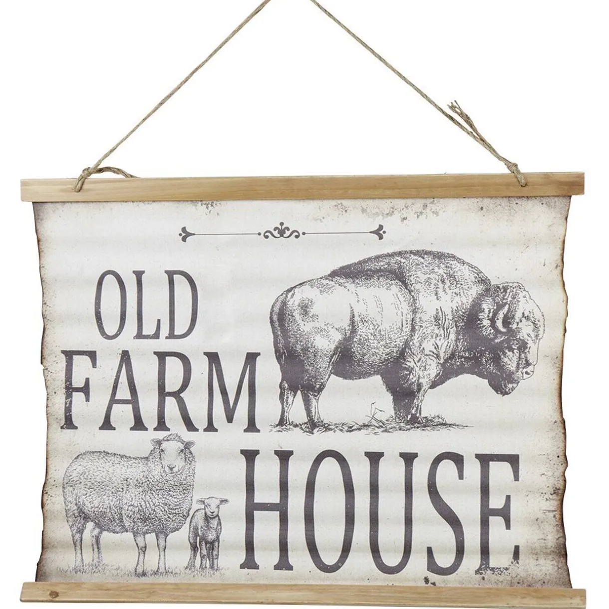 Parchemin de décoration avec inscription « Old Farm House » et motifs animaux.