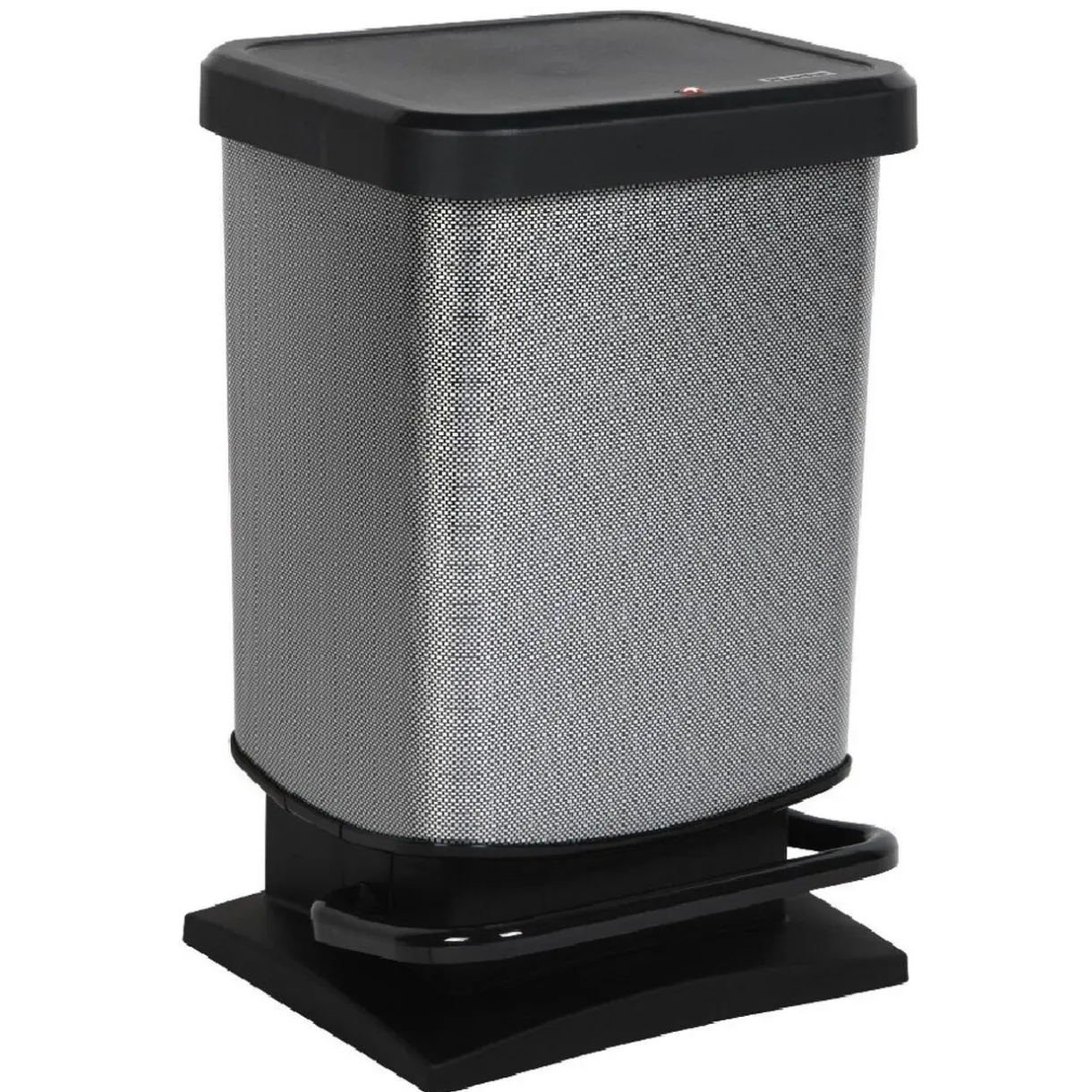 Poubelle à pédale 20 L, dim. 29.5×26.5xh.45.5 cm, polypropylène. Large pédale, aspect carbone, cerclage pour sac poubelle.