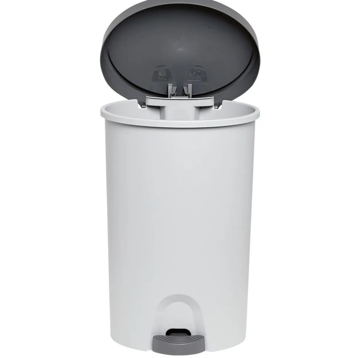 Poubelle à pédale d’une contenance de 27 litres en plastique, facile à nettoyer.