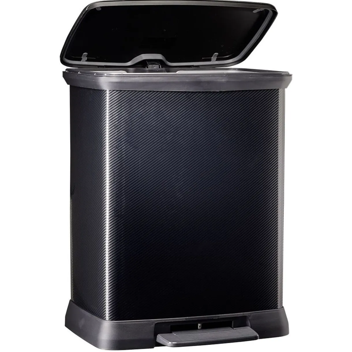 Poubelle à pédale d’une contenance de 30 litres en plastique uni noir carbone.