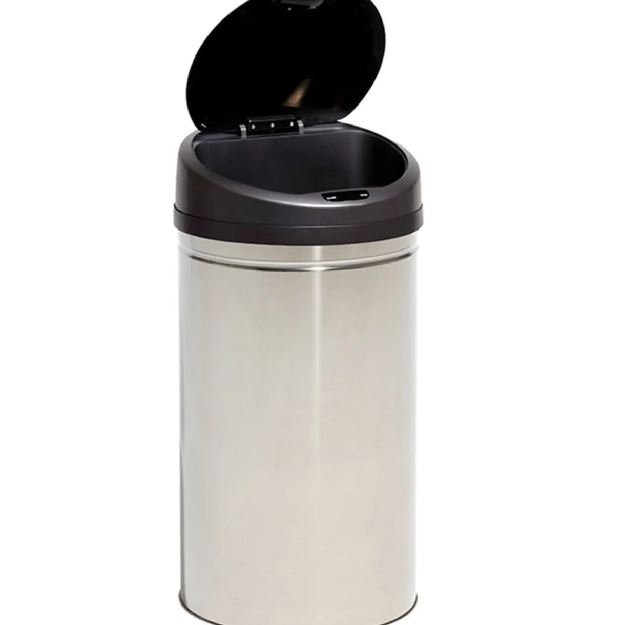 Poubelle automatique grise 28 L, dim. Ø32xh.60 cm, inox. Hygiénique : plus besoin de la toucher pour qu’elle s’ouvre !Elle s’ouvre dès que vous approchez la main grâce à ses capteurs infrarouges. Seau intérieur inclus. Fonctionne avec 4 piles LR06 non fournies.