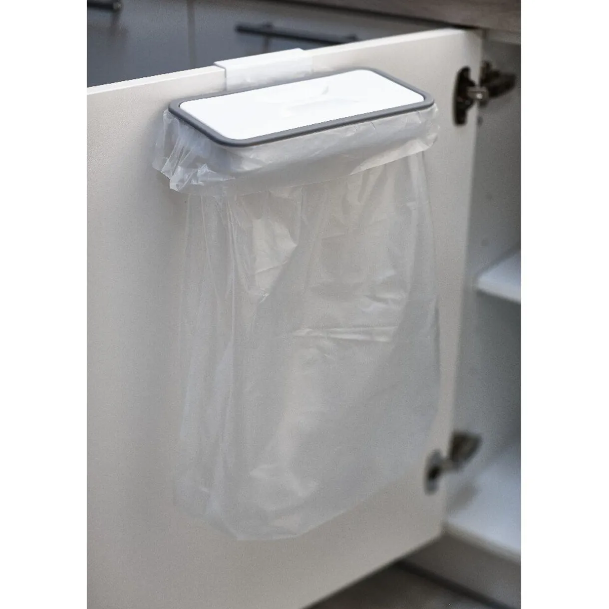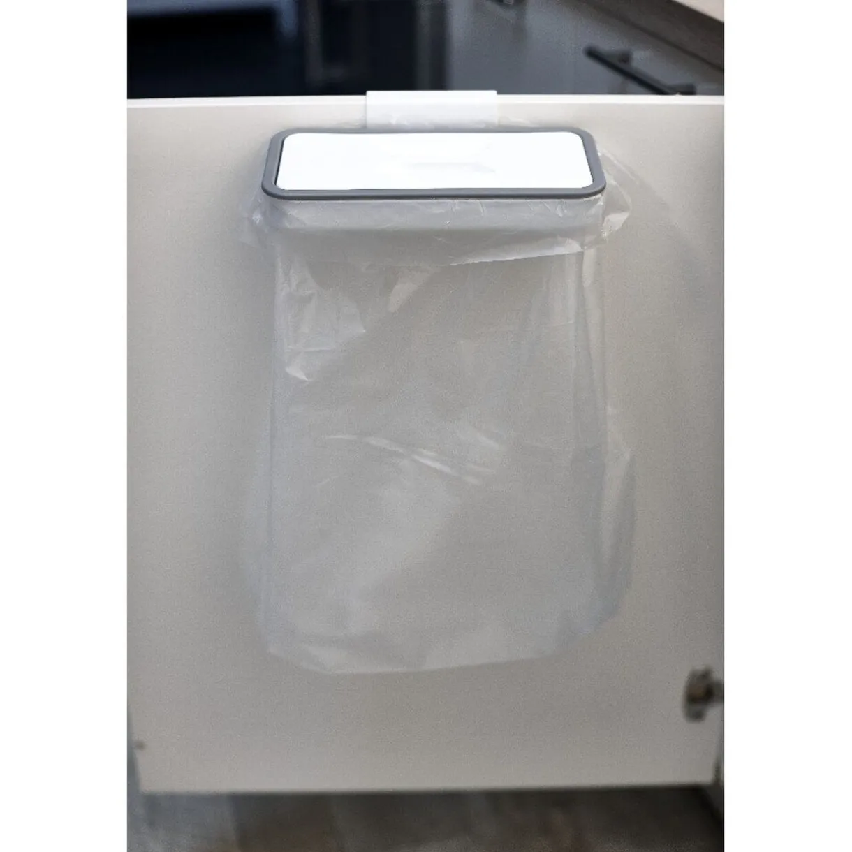 Jetez vos déchets rapidement en ayant une poubelle à portée de main ! Cette poubelle pourra être fixée sur une porte intérieure de placard, sous l’évier par exemple. Il vous suffit d’ajouter un sac poubelle et le tour est joué.