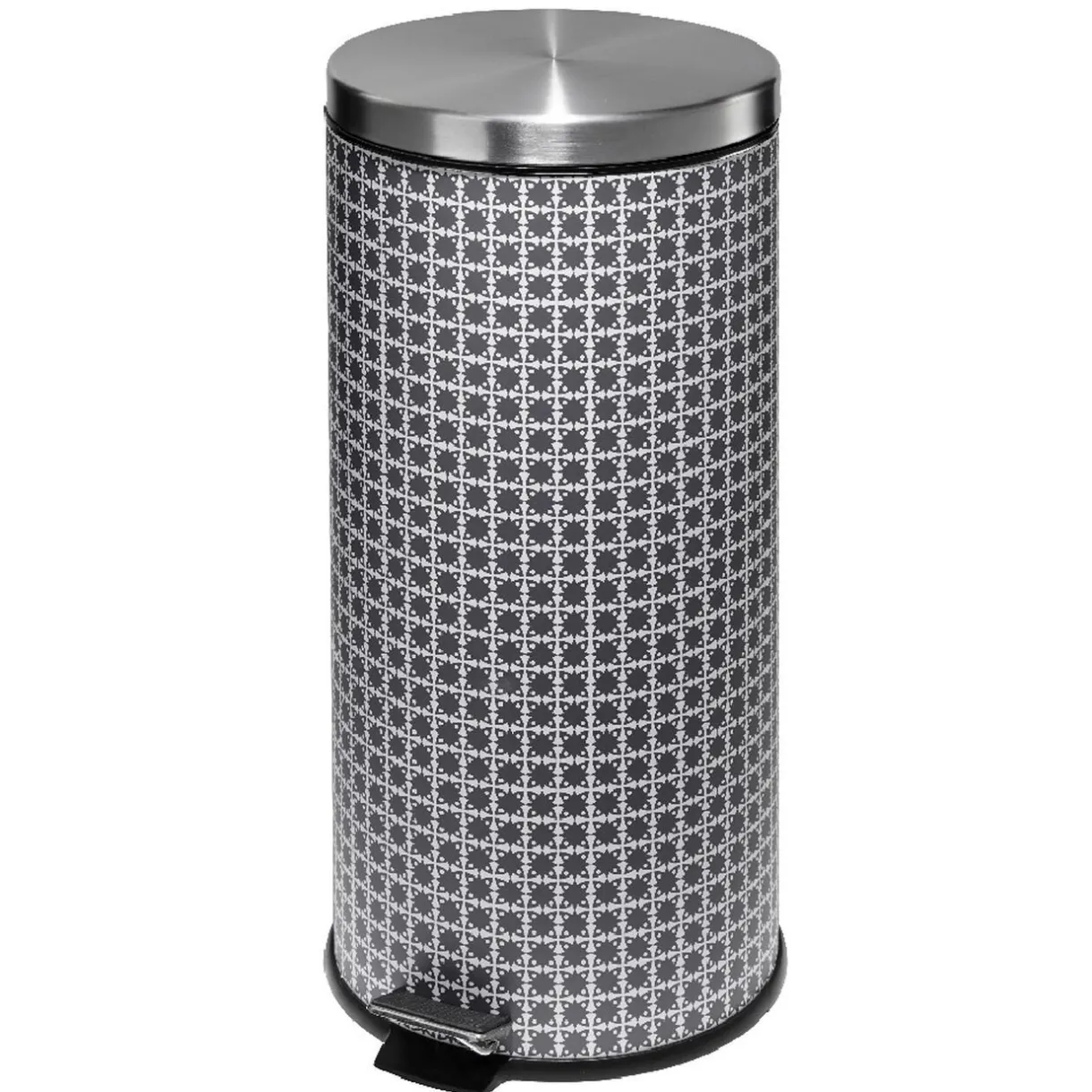 Fonctionnelle et stylée! Poubelle ronde à pédale design carreau de ciment gris.