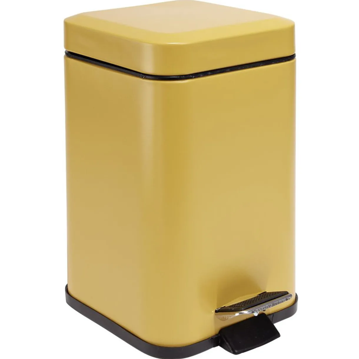 Cette poubelle à pédale en métal jaune trouvera idéalement sa place dans une salle de bain ou des sanitaires.