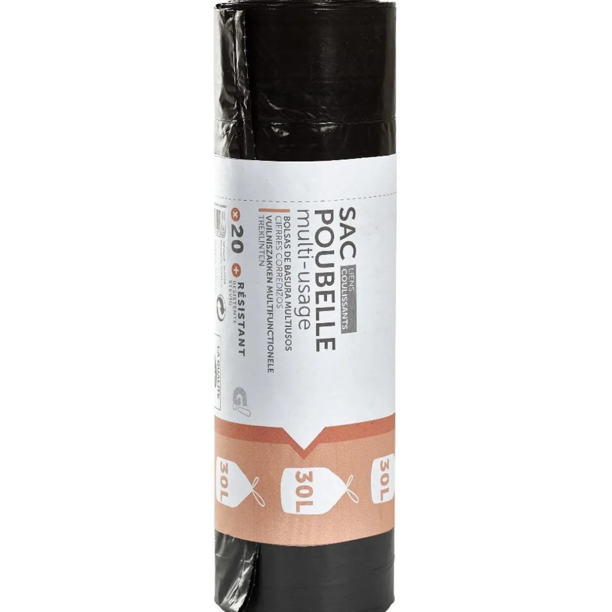 Lot de 20 sacs poubelle triple épaisseur de 30 l avec anses.