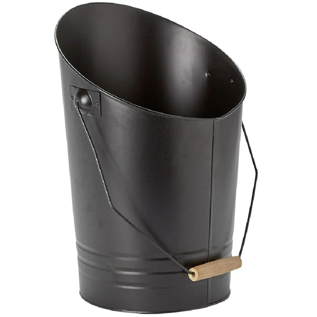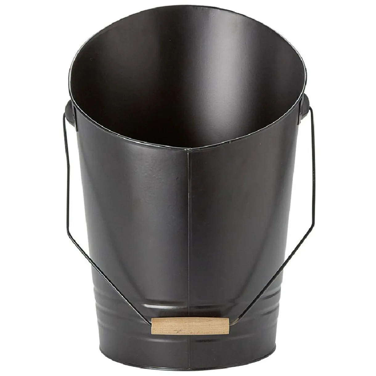 Seau à cendres avec pelle en acier noir finition bois pour le nettoyage de votre cheminée, poêle ou barbecue.