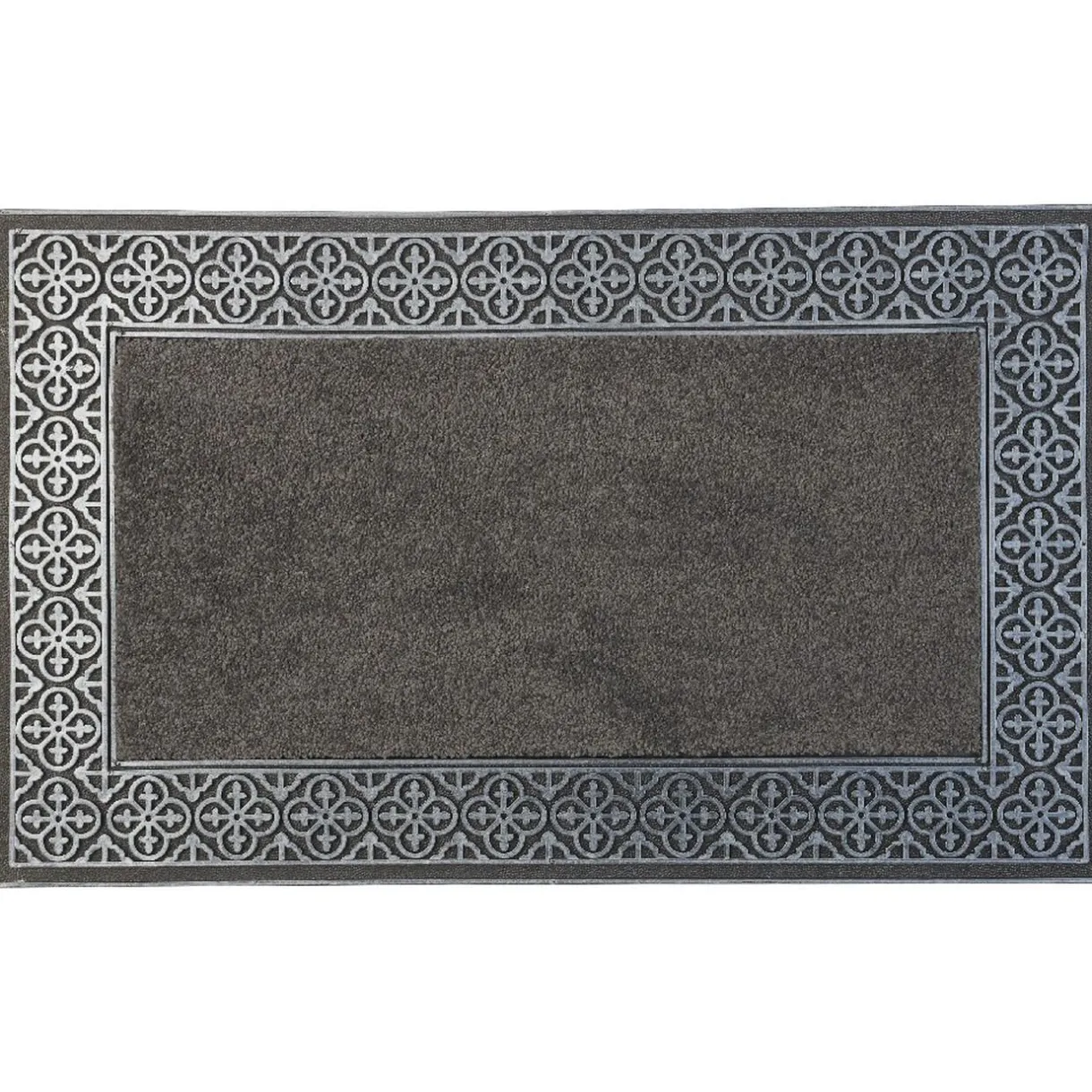 Tapis d’entrée avec dos en caoutchouc noir et bordure déco arabesques.