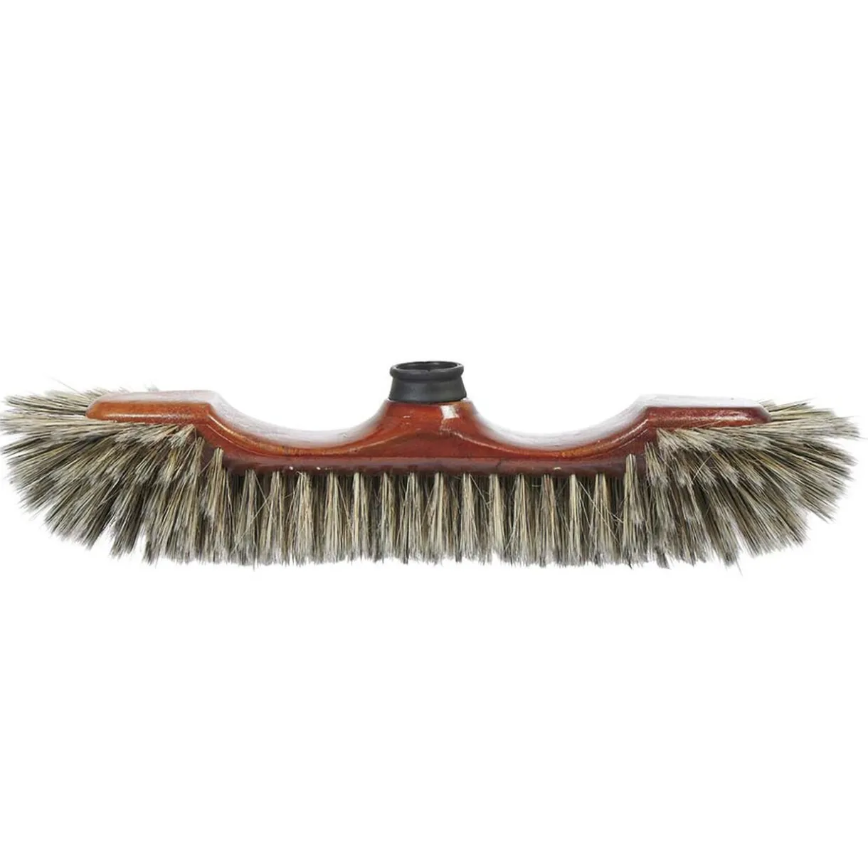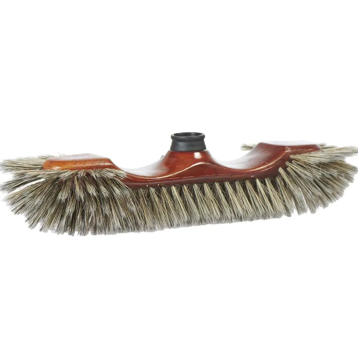 Tête de balai en forme demi-tête en bois verni et fibres de soie.
