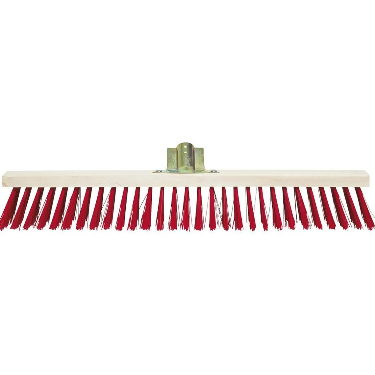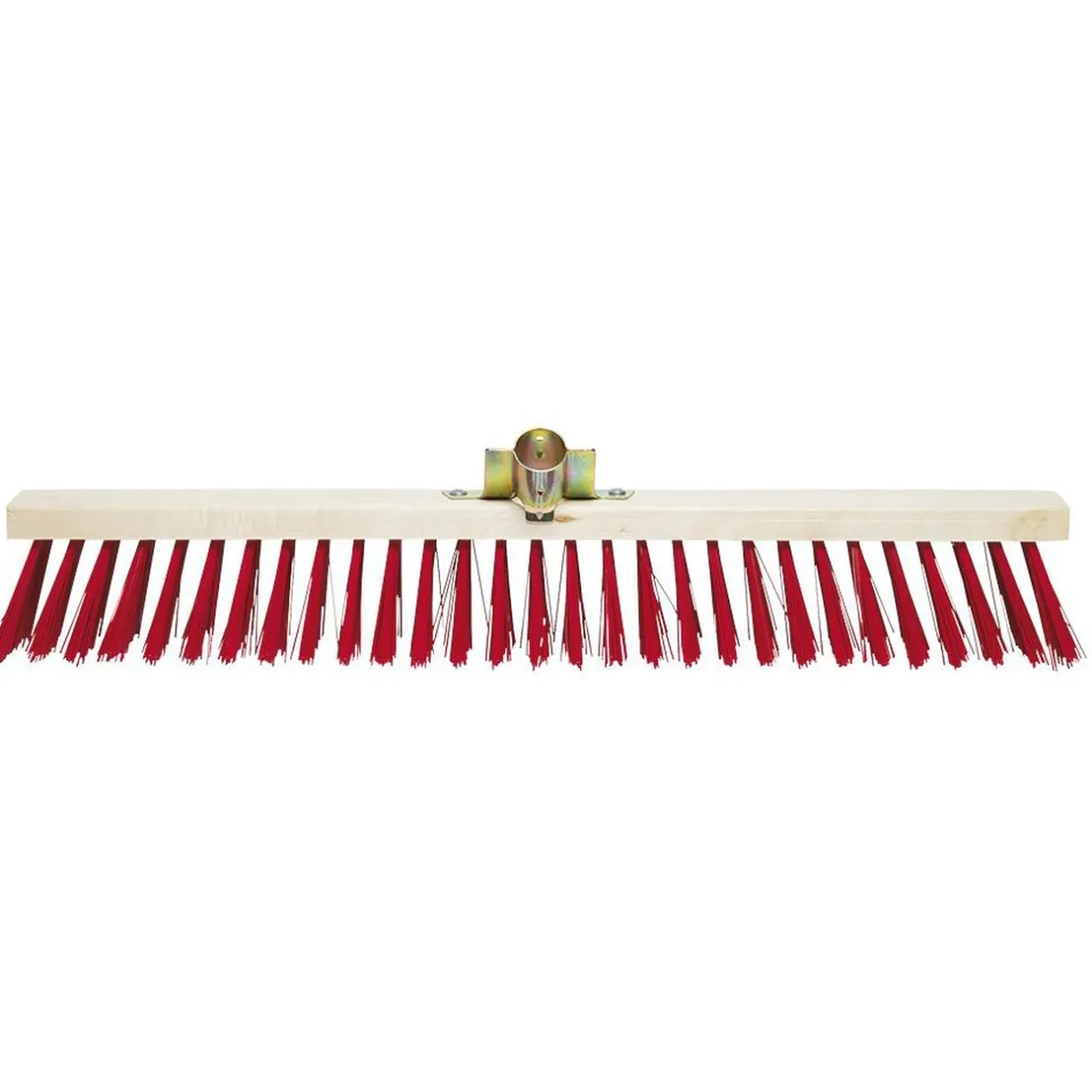 Tête de balai en bois à poils rigides rouges pour extérieur.