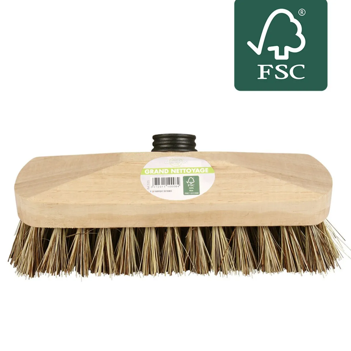 Tête de balai brosse avec monture en bois, lave pont traditionnel.